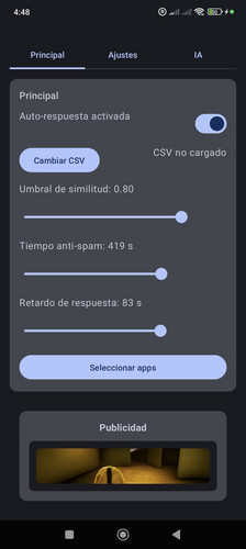 - Umbral de similitud: Ajusta qué tan parecido debe ser el mensaje para responder
